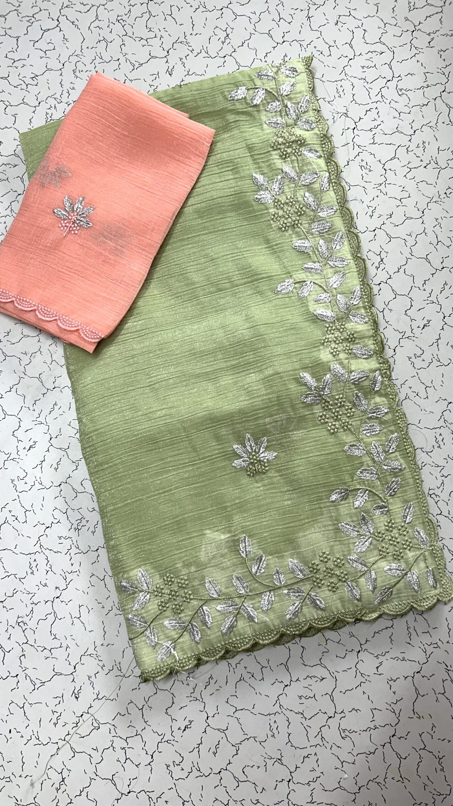 Crushed Chiffon Sarees with Contrast Blouse