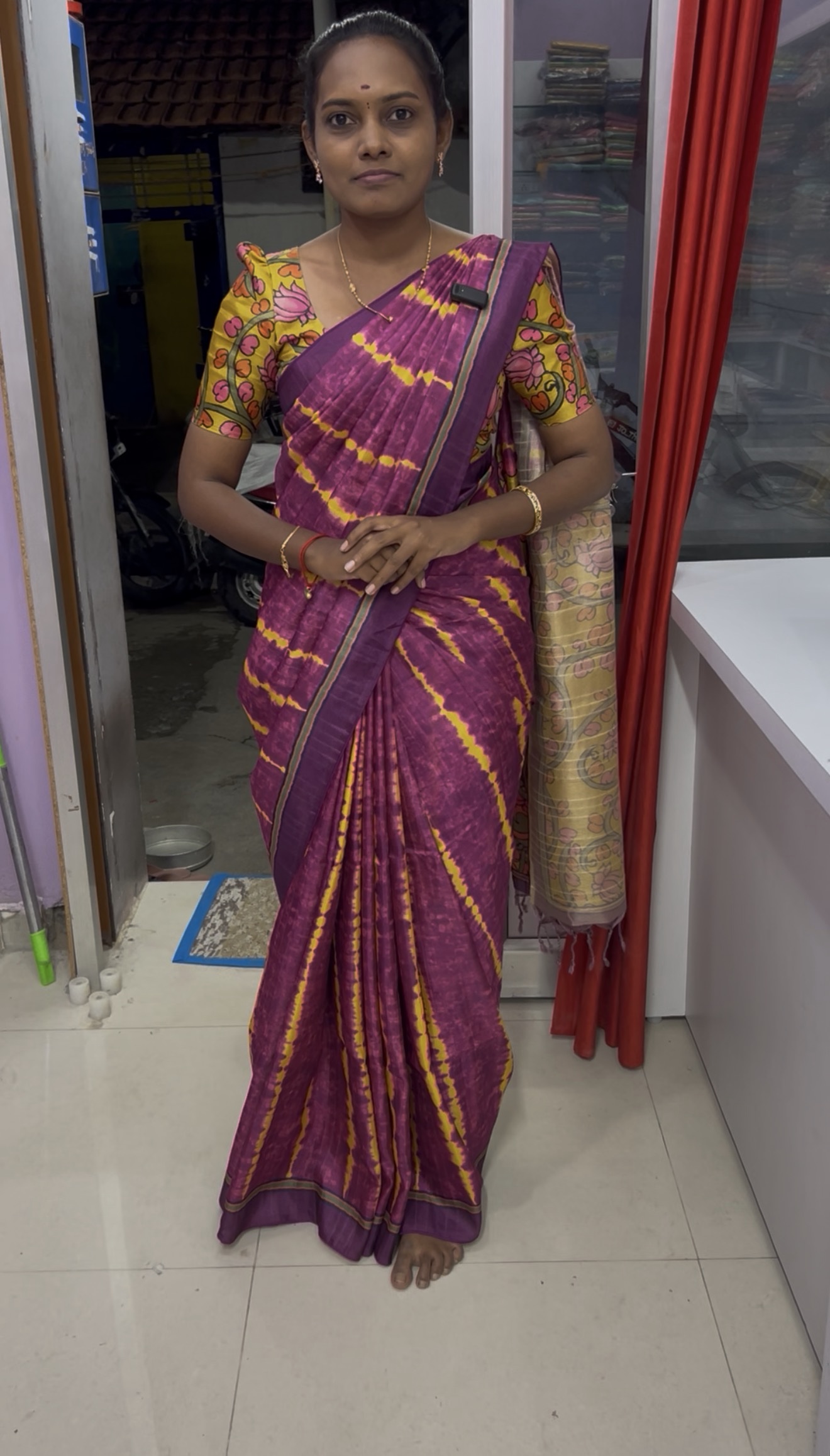 Semi Tusser Saree with Kalamkari Pallu & Blouse