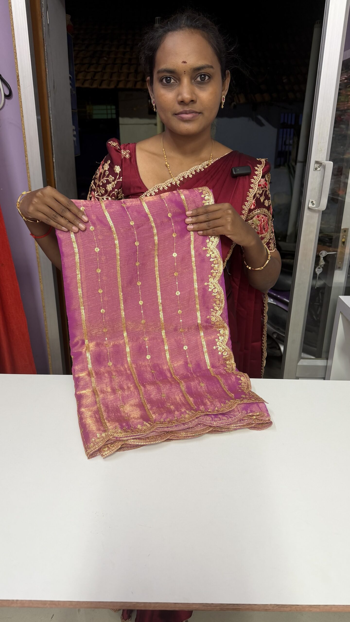Space Silk Saree with Embroidery Scalap Work in Border